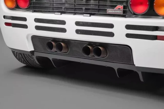 No obstante, este F1 no es una unidad cualquiera: lleva instalado el High Downforce Kit, un conjunto aerodinámico especial que incluye alerón fijo posterior de gran tamaño, paragolpes delantero tipo GTR, rejillas y lamas adicionales en el frontal, y otros detalles que recuerdan al McLaren F1 GTR y al F1 LM. Solo unas pocas unidades del F1 de calle recibieron este paquete tan agresivo.