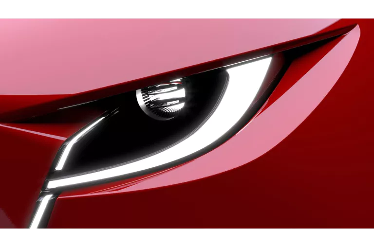 Mazda imprime su lenguaje de diseño Kodo a una carrocería moderna y fácilmente reconocible, con líneas fluidas y elegantes proporciones de compacto con cierto aire deportivo (alerón integrado, pasos de rueda marcados y ausencia de parrilla frontal tradicional).