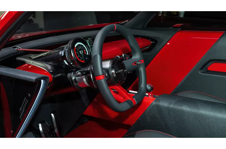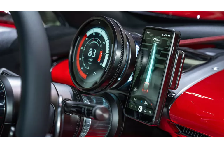 El corazón tecnológico está oculto, pero muy presente: el Vision X-Compact propone que sea el propio smartphone del usuario el centro conectado, que se integra en un soporte específico, devolviendo así el control digital al conductor. El volante, grande y de radios finos, con levas y ruedas de control, refuerza una atmósfera de conducción pura.