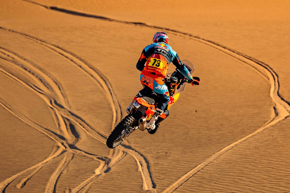 Por su parte, el estadounidense Ricky Brabec (Honda) ha puesto el «piloto automático», navegando con seguridad para proteger su liderato frente al empuje de Daniel Sanders (KTM).