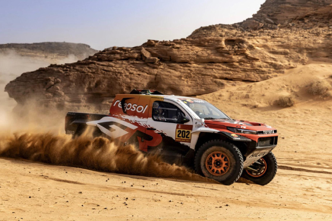 El francés Guerlain Chicherit (Toyota) volvió a demostrar que la Hilux es la reina de la fiabilidad en la segunda semana de competencia, adjudicándose su segunda victoria de etapa consecutiva. Chicherit ha sabido leer el terreno pedregoso de Yanbu sin castigar los neumáticos, una lección de manejo técnico para todos los presentes.