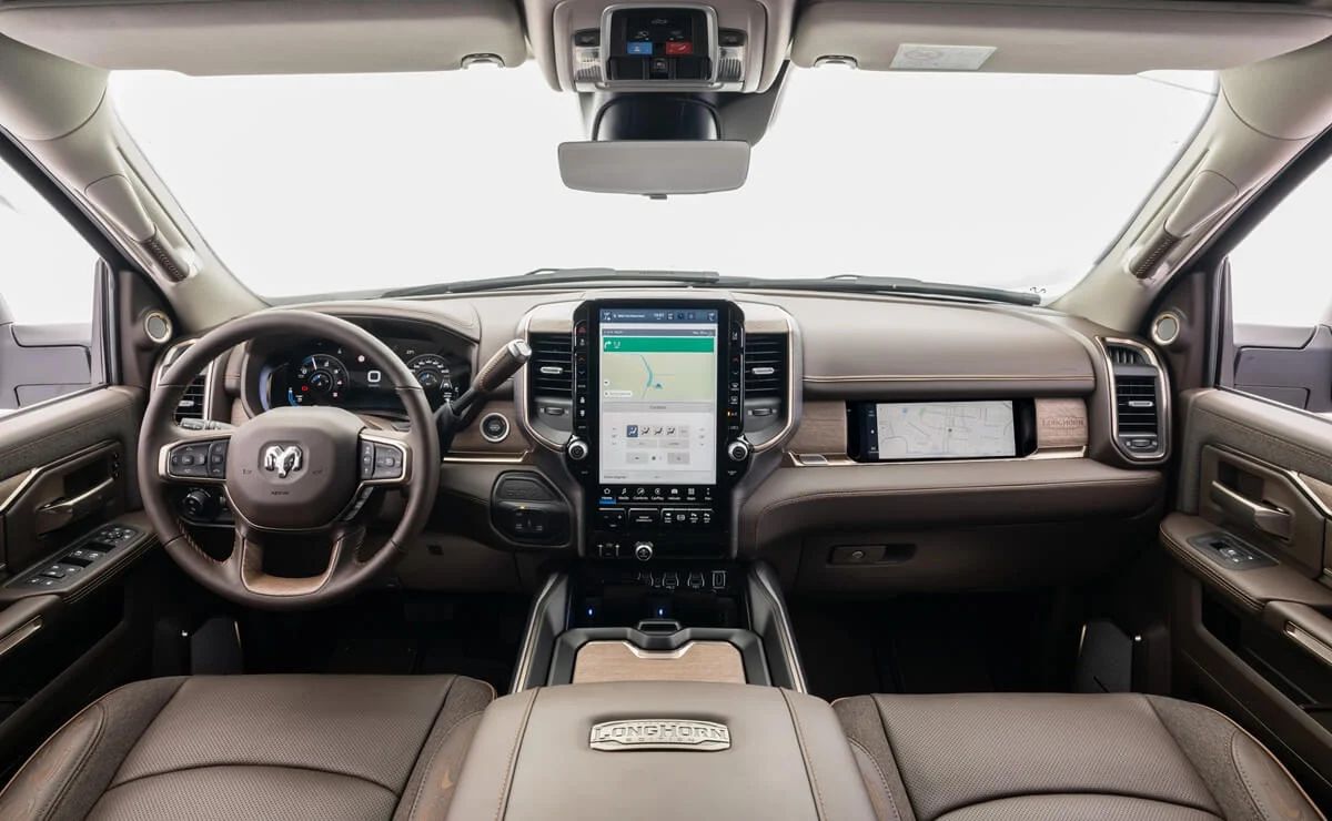 En el interior, la línea Heavy Duty emana un enfoque más premium que nunca conservando lo que ya ofrecía y agregando materiales de calidad superior, tapizados de cuero de diseño exclusivo y otros detalles artesanales, sobre todo en la variante tope de gama de la 3500, denominada Limited Longhorn.
