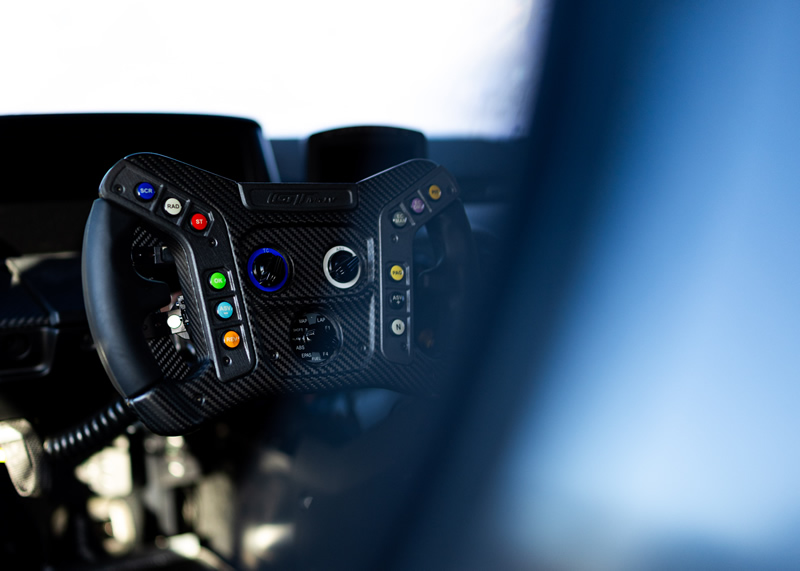 El conjunto mecánico se complementa con una suspensión de competición equipada con amortiguadores de válvula solenoide adaptativa (ASV) desarrollados junto a Multimatic, además de una distancia entre ejes ampliada y una transmisión de carreras diseñada a medida. Su carrocería de fibra de carbono con configuración de “cola larga” está optimizada para generar altos niveles de carga aerodinámica y maximizar la estabilidad a altas velocidades.